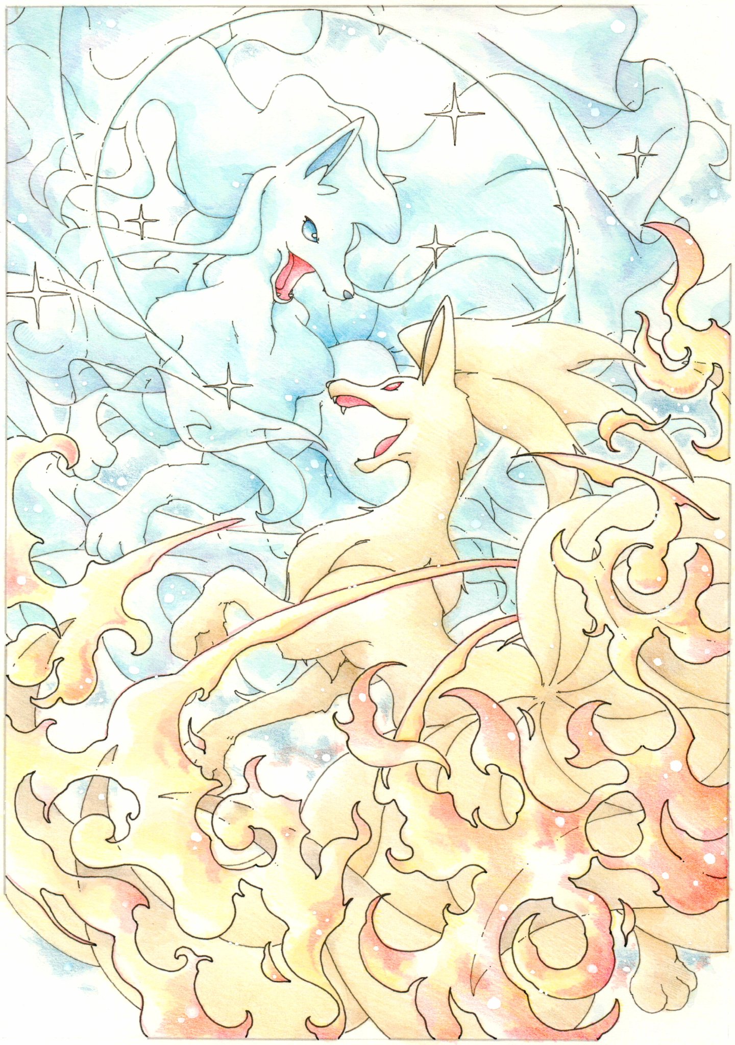 Inori 今日のポケモン図鑑 no 767 アローラキュウコンの オーロラベール キュウコンの れんごく 透明水彩 色鉛筆 T Co Jbp4nnhfjk Twitter